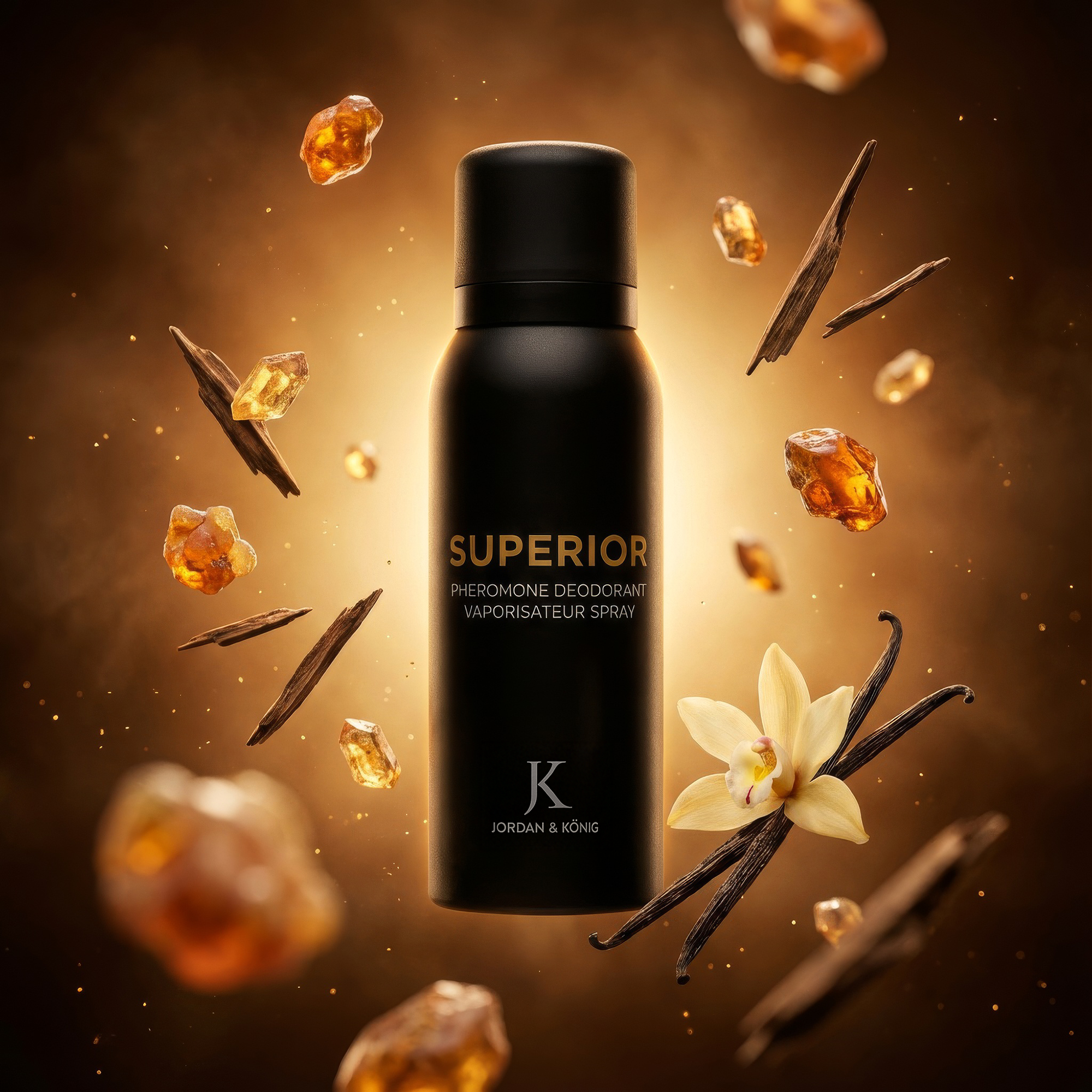 SUPERIOR® Deodorant trägt die Signatur unseres Extraits – jetzt als täglicher Begleiter. Die gleiche Komposition aus Bittermandel, cremigem Leder und warmer Tonkabohne. Der gleiche JK Pheromonkomplex.